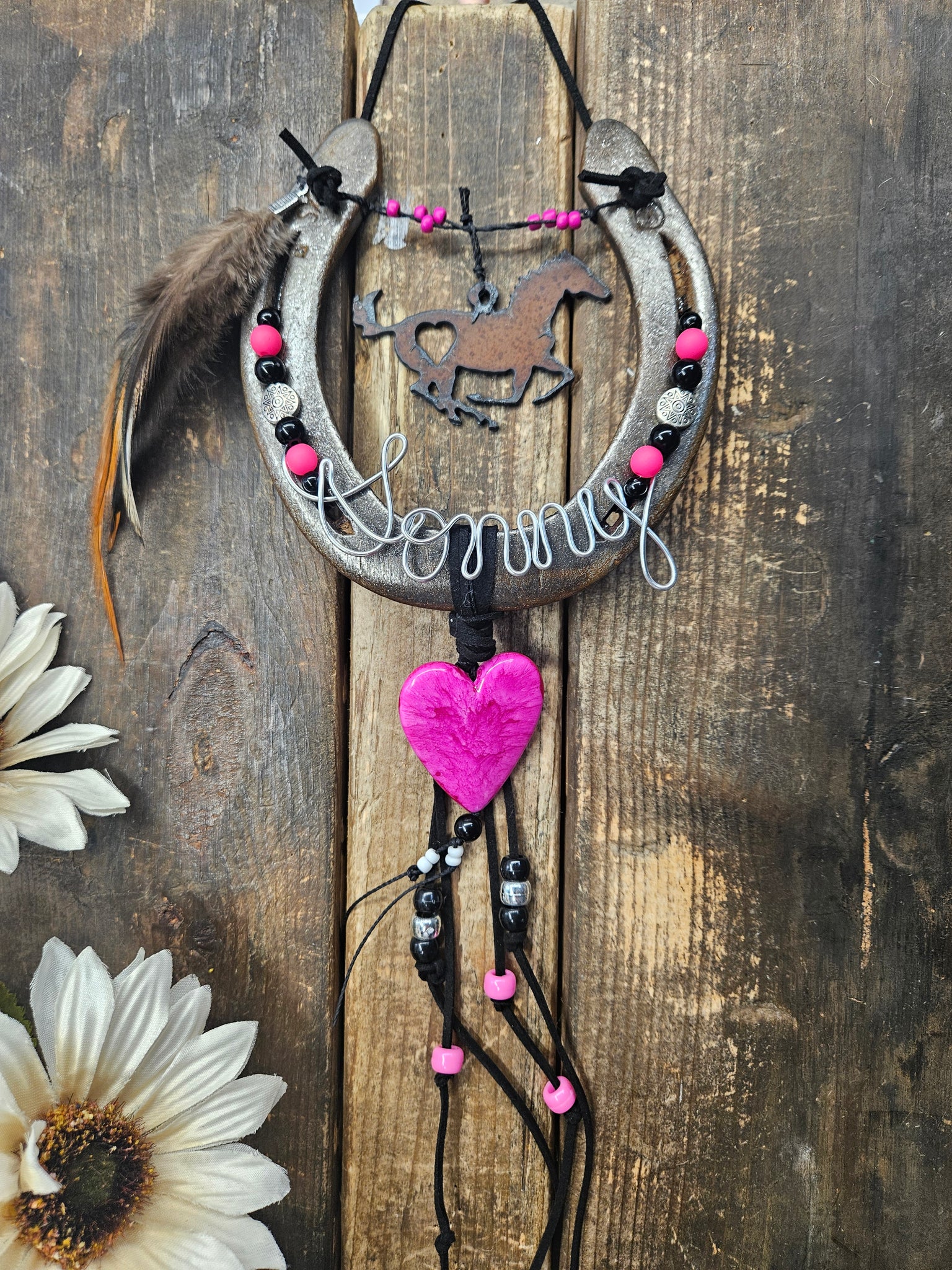 Horse Lover Gift - Custom Hot Pink Heart Horseshoe