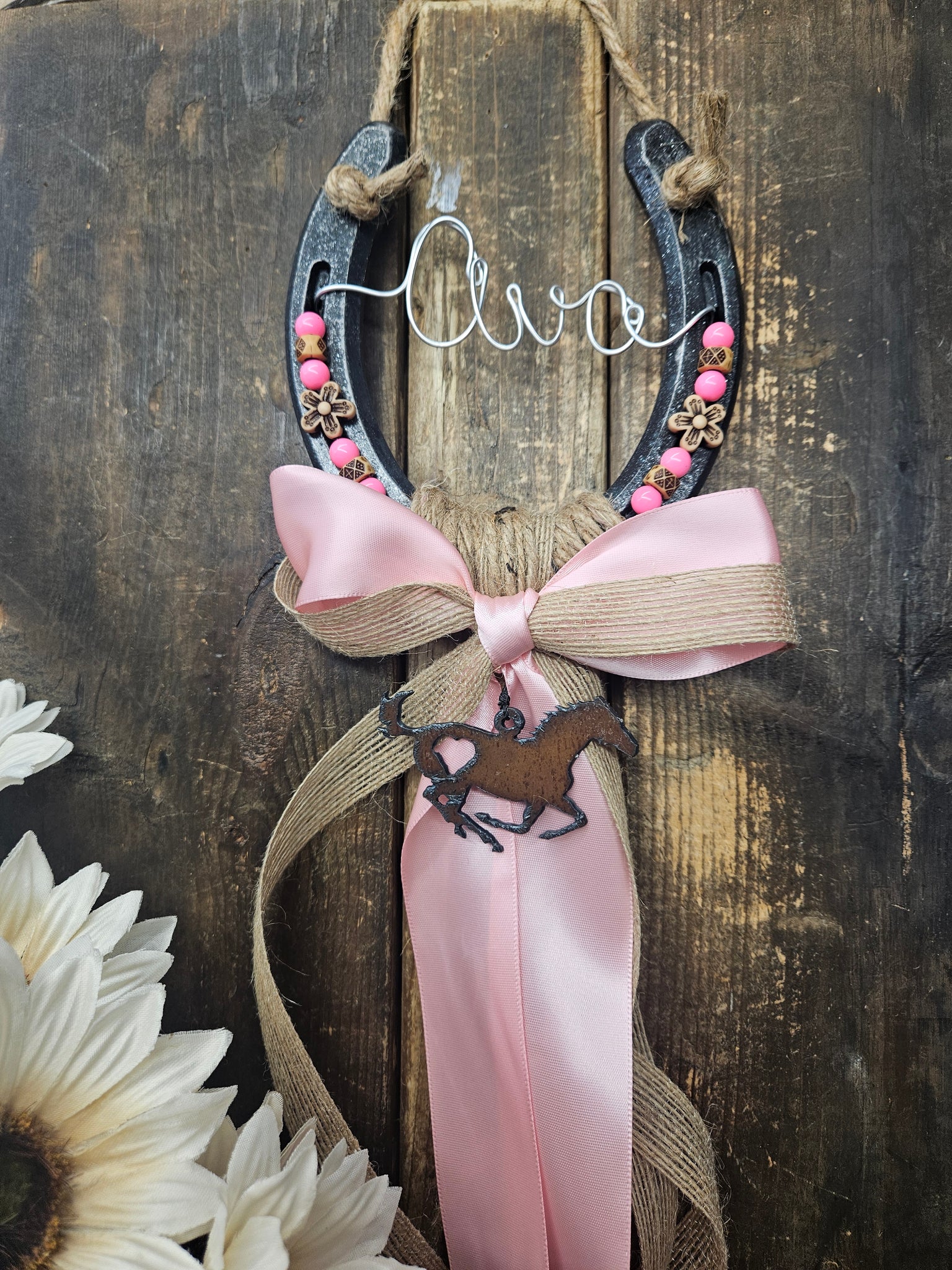 Personalized Horse Gift - Pink Sands Rustic Horseshoe